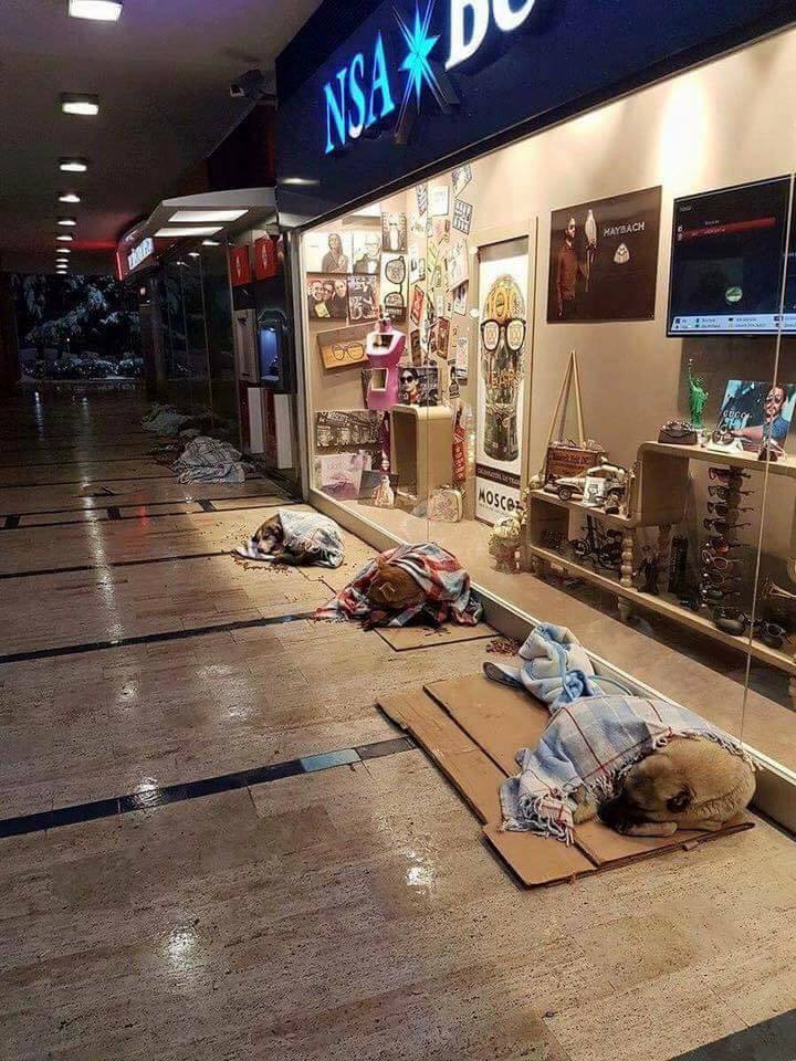 Фотофакт: Уличные собаки укрываются от непогоды в торговом центре Стамбула