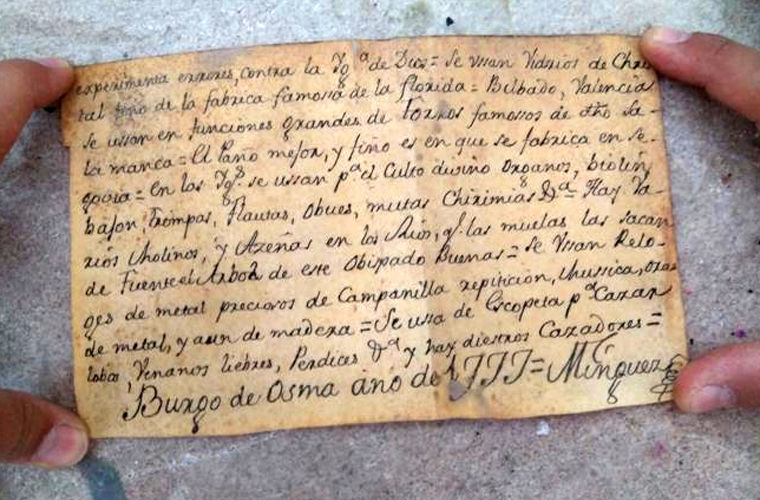 Испанские реставраторы, работавшие над деревянной статуей Иисуса Христа XVIII века из собора Бурго-де-Осма, обнаружили записку от священника, датированную 1777 годом.