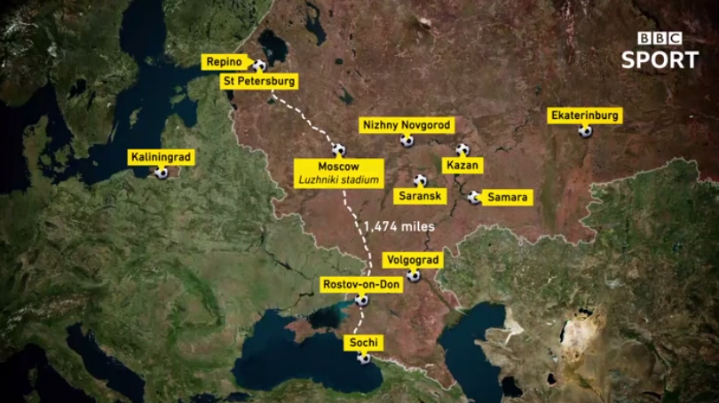 Британский телеканал BBC представил видеоанонс городов чемпионата мира-2018, в котором Крым обозначен территорией России.