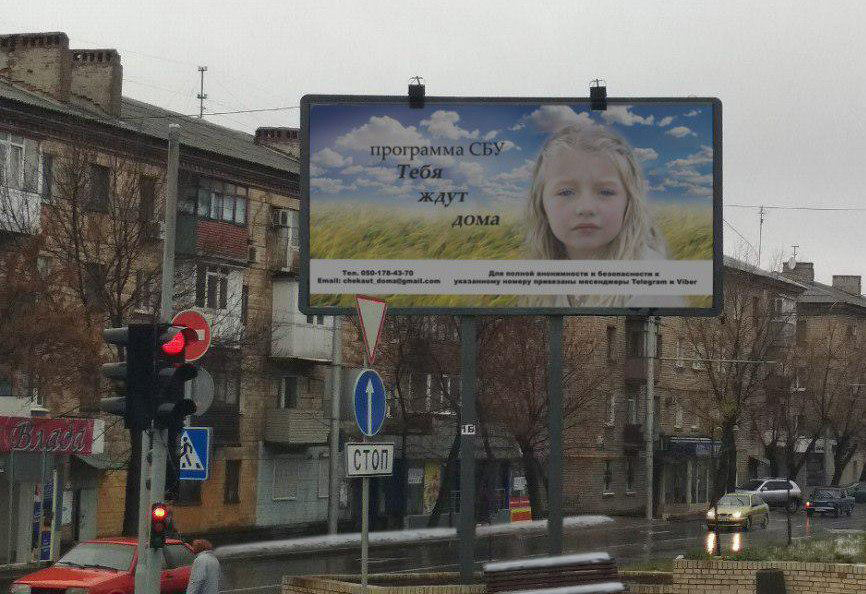 Служба безопасности Украины смогла вывесить билборды с рекламой программы «Тебя ждут дома» прямо под носом у боевиков - в центре оккупированных Донецка и Горловки. Об этом говорится на сайте Миротворец.