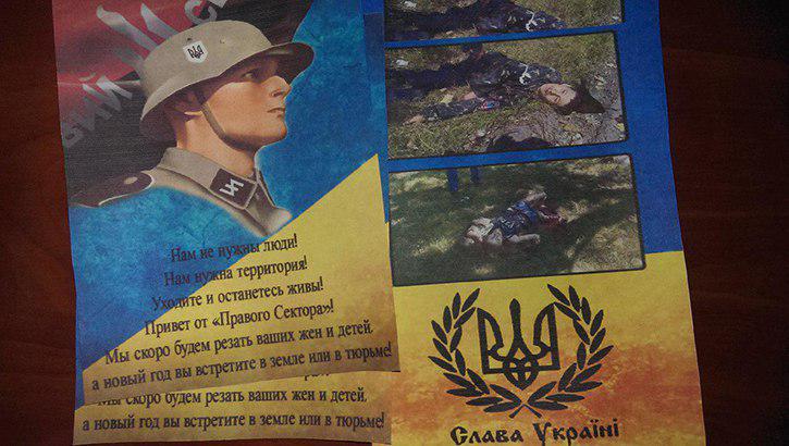На самой листовке написан провокационный текст и изображены окровавленные тела.