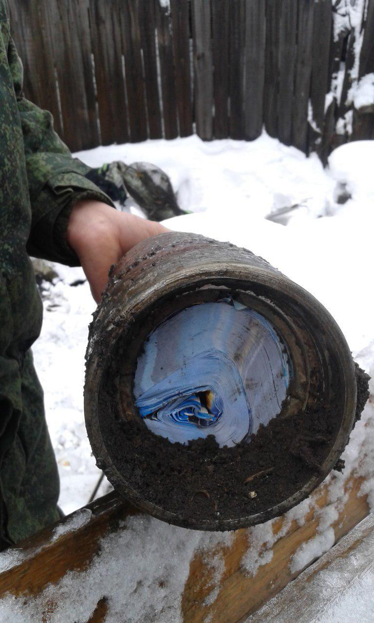 Informnapalm отмечает, что фото снаряда с листовками – постановочное.