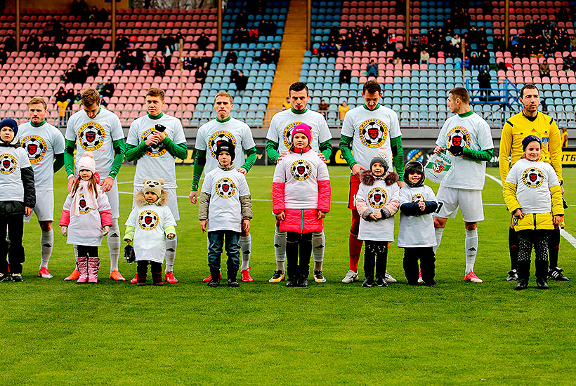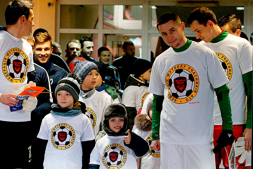 Надев фирменные футболки с логотипом акции дети вывели на футбольное поле игроков ФК «Ворскла» Полтава и ФК «Мариуполь» Мариуполь, и вместе с футболистами спели гимн Украины.