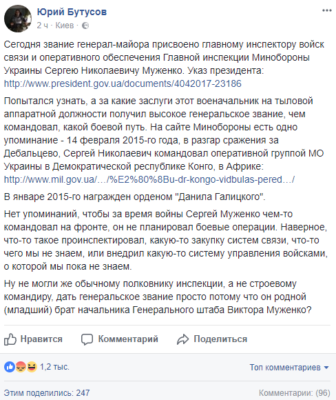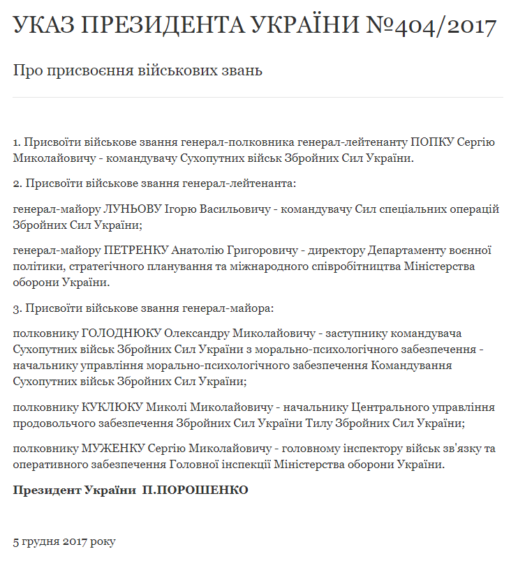 В сети активно обсуждают новость о том, что президент Украины Петр Порошенко по случаю Дня армии повысил в звании брата начальника Генерального штаба Вооруженных сил Украины (ВСУ) Виктора Муженко - Сергея Муженко.