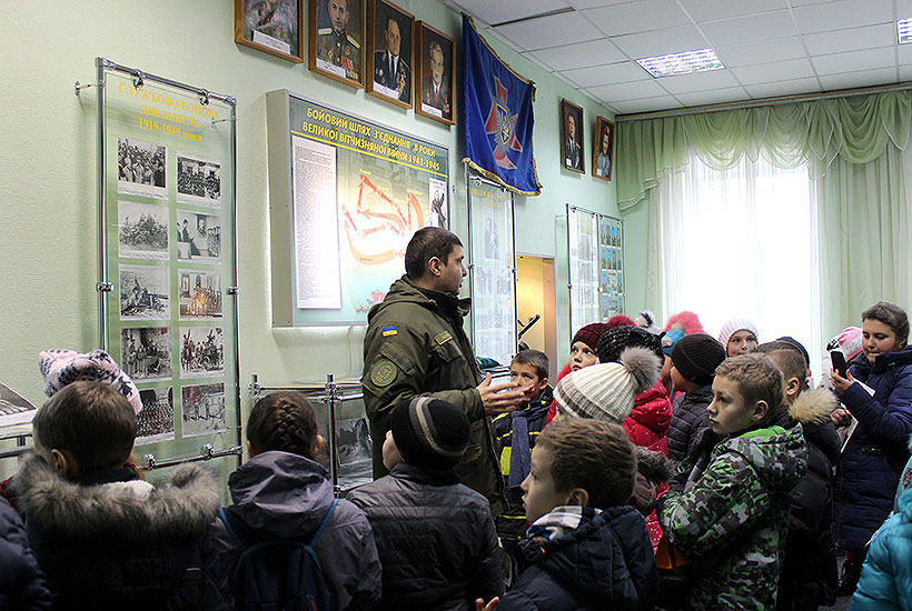 Що особливо зворушило серця школярів, та це екскурсія до кімнати історії та бойової слави частини. Заступник командира військової частини по роботі з особовим складом полковник Олександр Росляков ознайомив слухачів з історією з’єднання, основними завданнями та особливостями служби особового складу. Учні також відвідали кімнату «Динамівської слави», Храм Андрія Первозванного, розташування бойового підрозділу, їдальню, кімнату спортивних досягнень.