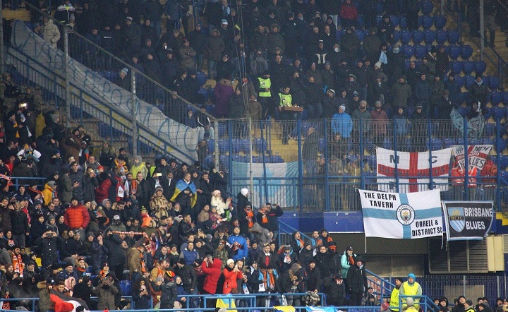 Болельщики английского клуба вывесили баннер с надписью: "Слава героям АТО Man from City".
