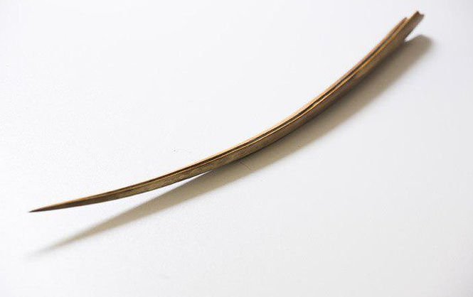 "Копье нам передали недропользователи, добывающие бивни мамонта, они нашли его внутри мамонтовых ребер. Длина орудия - больше 30 см, оно имеет очень острый идеально отшлифованный кончик. На некотором расстоянии от острия по обоим краям орудия есть пазы, абсолютно ровные по ширине и глубине и как будто сделанные станком. В такие пазы вкладывались микролиты - острые пластинки из камня, и это усиливало поражающую способность копья", - рассказал Григорьев.