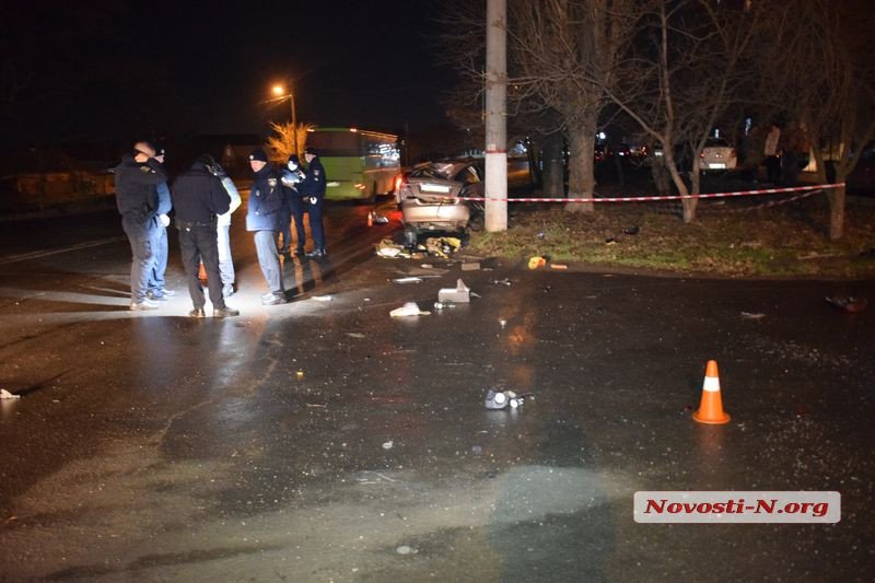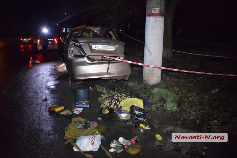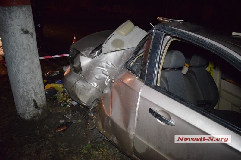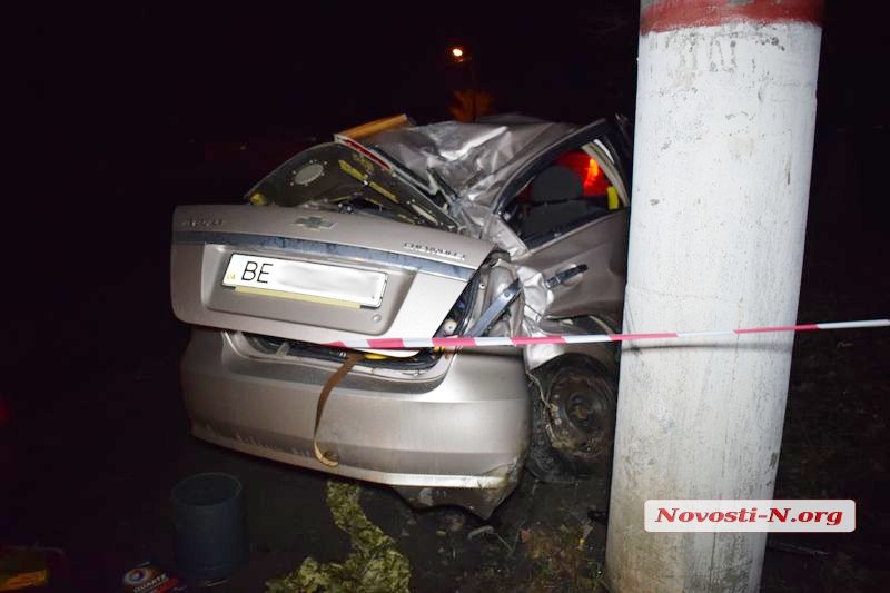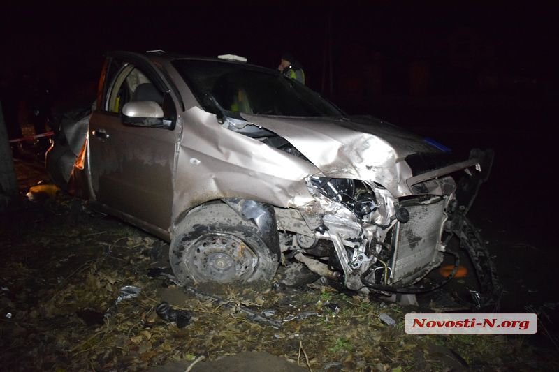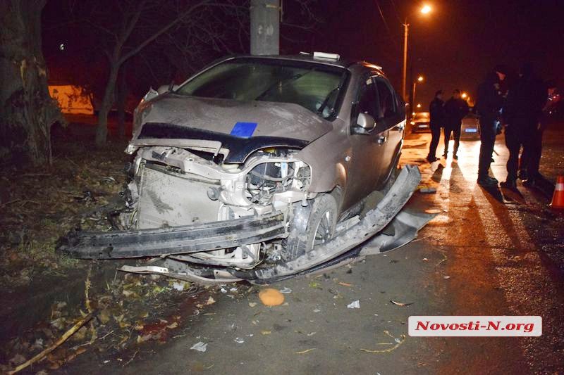 Вечером в субботу, 9 декабря, на улице Кирова в Николаеве Chevrolet Aveo врезался в столб.