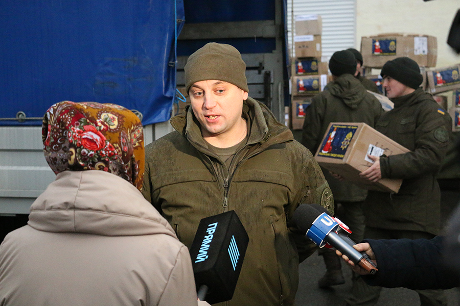 «Всі військові частини Нацгвардії України приєдналися до цієї акції. Не тільки військовослужбовці, але й члени їх родин протягом місяця збирали речі, які необхідні дітям. Для того, щоб напередодні свят передати вітання дітям, забезпечити їх смаколиками, теплим одягом, іграшками в першу чергу. Це масштабна акція, яка є в наш час необхідною для того, щоб підтримати малечу на сході», - зазначив начальник відділу інформаційної підтримки НГУ Віктор Голумбівський.