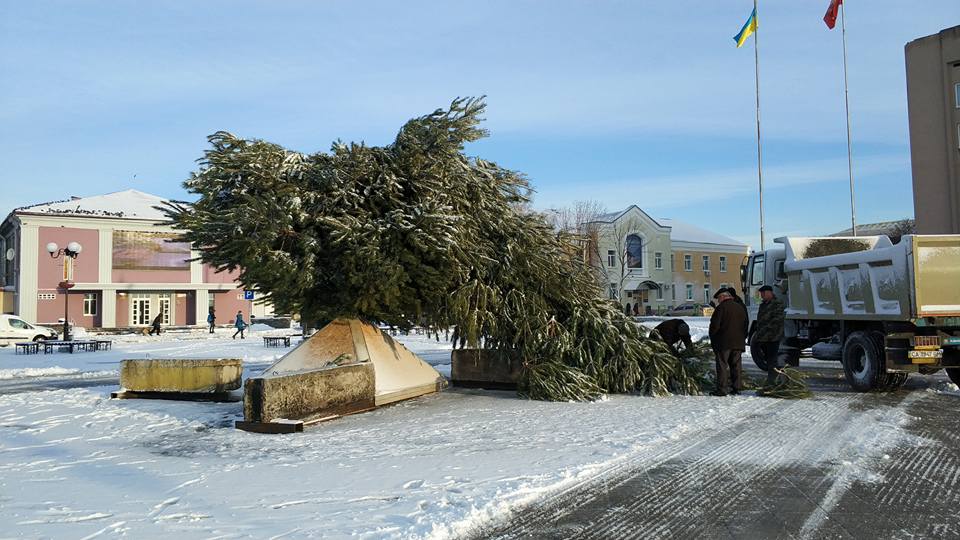 В Золотоноше в Черкасской области из-за порывов ветра упала главная новогодняя елка города.