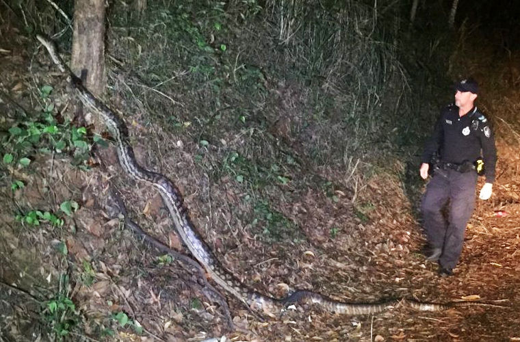 Аметистовый питон является самым крупным из всех змей, обитающих в Австралии. Обычно он встречается в лесах, найти его вблизи жилых зданий — большая редкость. Люди в качестве еды питона не интересуют, он предпочитает птиц и некрупных млекопитающих. Благодаря вежливым полицейским он не скоро изменит свой рацион.