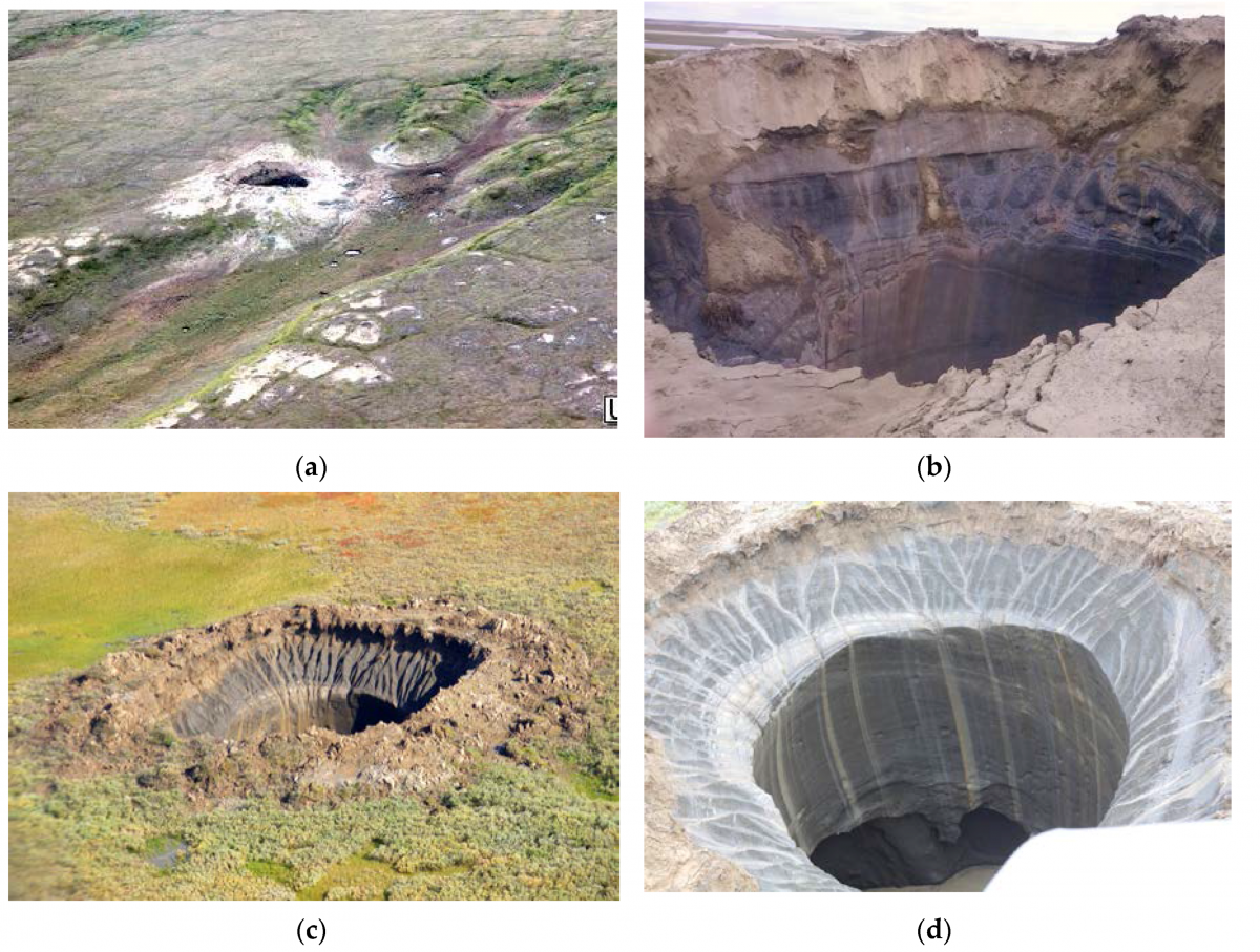 Используя космические снимки сверхвысокого разрешения, исследователи создали подробные модели рельефа ключевых участков до и после образования странных воронок. Это позволило заметить, что перед их появлением сформировались бугры, высота которых достигала пяти метров. По мнению специалистов, это могло произойти в результате накопления природного газа под слоем вечной мерзлоты. При увеличении давлении газа происходил взрыв и образовывалась воронка.