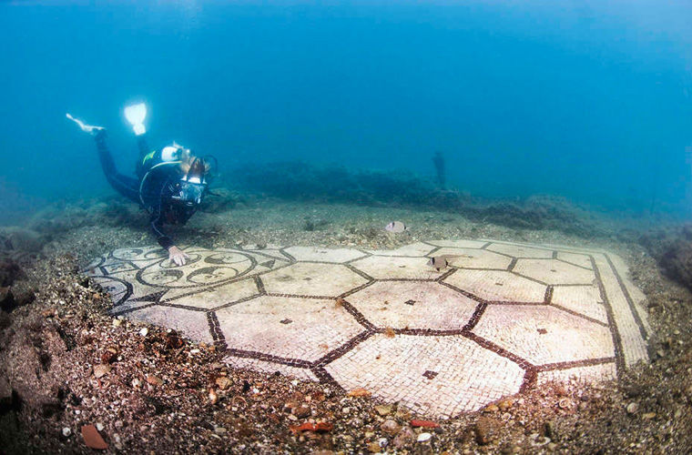 Погрузившись в пучину римских развлечений, фотограф обнаружил мощеные дороги, стены, мозаики и даже статуи, которые пережили водный плен и разрушительные моменты истории.