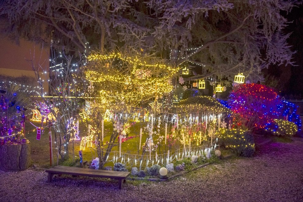 Затем появляются белки с сияющими глазами, снеговики с носами-морковками, сверкающие подарки, переливающиеся кристаллы снега. Сад Оскара похож на 3D-рождественский фильм. Украшенный 70 тысячами светодиодных ламп это самый яркий сад в Венето и, возможно, даже во всей Италии. 69-летний Оскар Бонтемпо, бывший электрик, устраивает праздник для детей и взросых каждой Рождество, и в этом году итальянец установил новый рекорд. После 55 тысяч ламп 2016 года в этом году их число достигло 70 тысяч. С четырех часов дня его дом, расположенный в Сан-Фиор, провинция Тревизо, становится местном постоянного "паломничества" - к Оскату приезжают дети в сопровождении родителей, автобусы со школьниками, группы пожилых людей.