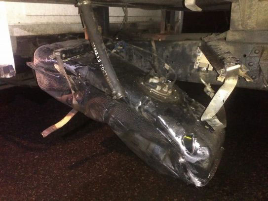 Вследствие удара топливный бак деформировался, бензин вылился на асфальт, оба автомобиля получили повреждения. О пострадавших не сообщается, на водителя конвойного авто составлен протокол за создание аварийной обстановки.