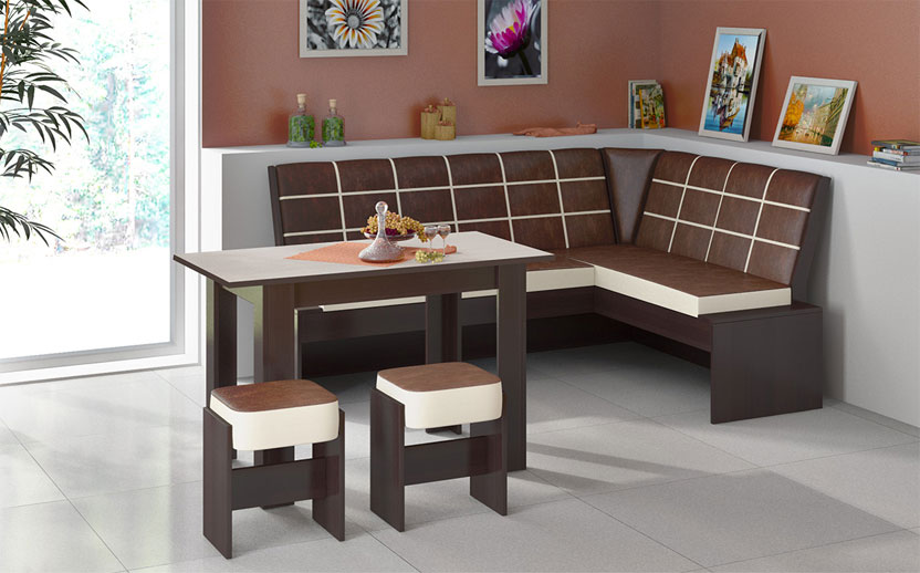 - кольорова палітра відтінків корпусу та тканини, за допомогою якої була виконана оббивка кухонних куточків для приймання смачних страв;