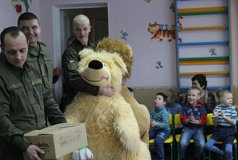 Накануне дня Святого Николая военнослужащие 5 Слобожанской бригады НГУ посетили специальный учебно-воспитательный комплекс №2 города Харькова, где бойцы передали детям подарки от Святого Николая, среди которых вещи, игрушки и сладости.