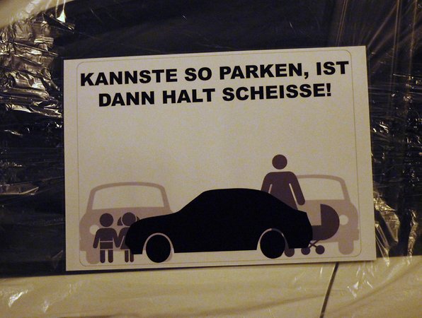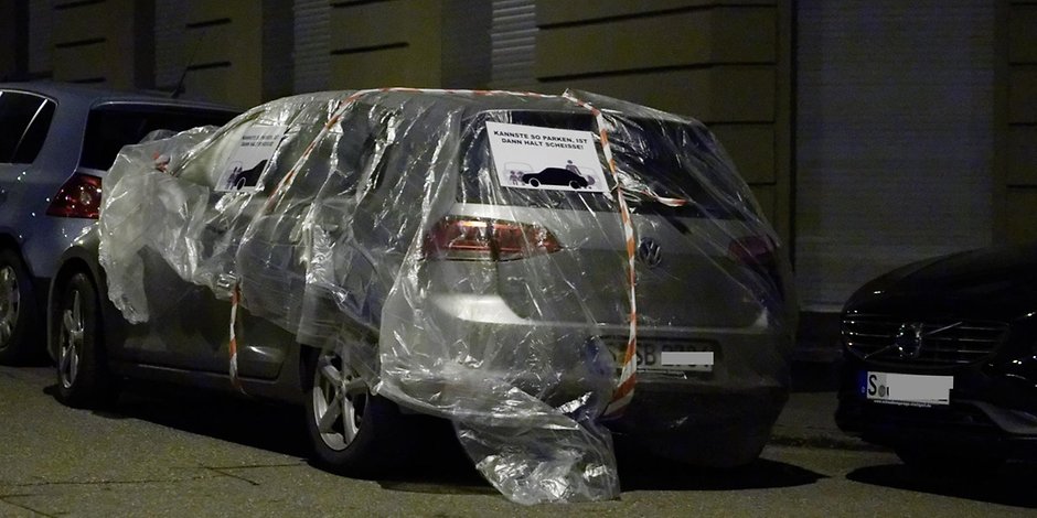 Акцию провели в плотно заселенном жилом районе на юге Штутгарта. Кроме целлофановой пленки, активисты приклеивали на лобовое стекло записки: «Если ты способен так припарковаться, тогда ты полный мудак». Стоит также отметить, что после акции полиция Штутгарта не получила ни одной жалобы от владельцев автомобилей, пишет berliner-zeitung.