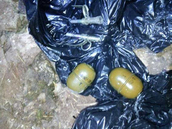 Під час огляду в ямі під підлогою правоохоронці виявили 2 поліетиленових пакети, в яких знаходилися гранати, пістолет з набоями та пайок з РФ.