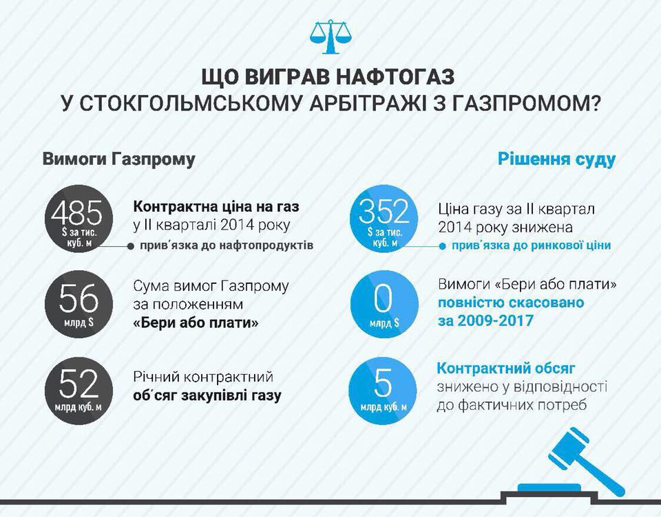 Нафтогаз оценивает общий положительный эффект решений арбитража в более $75 млрд за весь срок действия контракта на поставку газа.