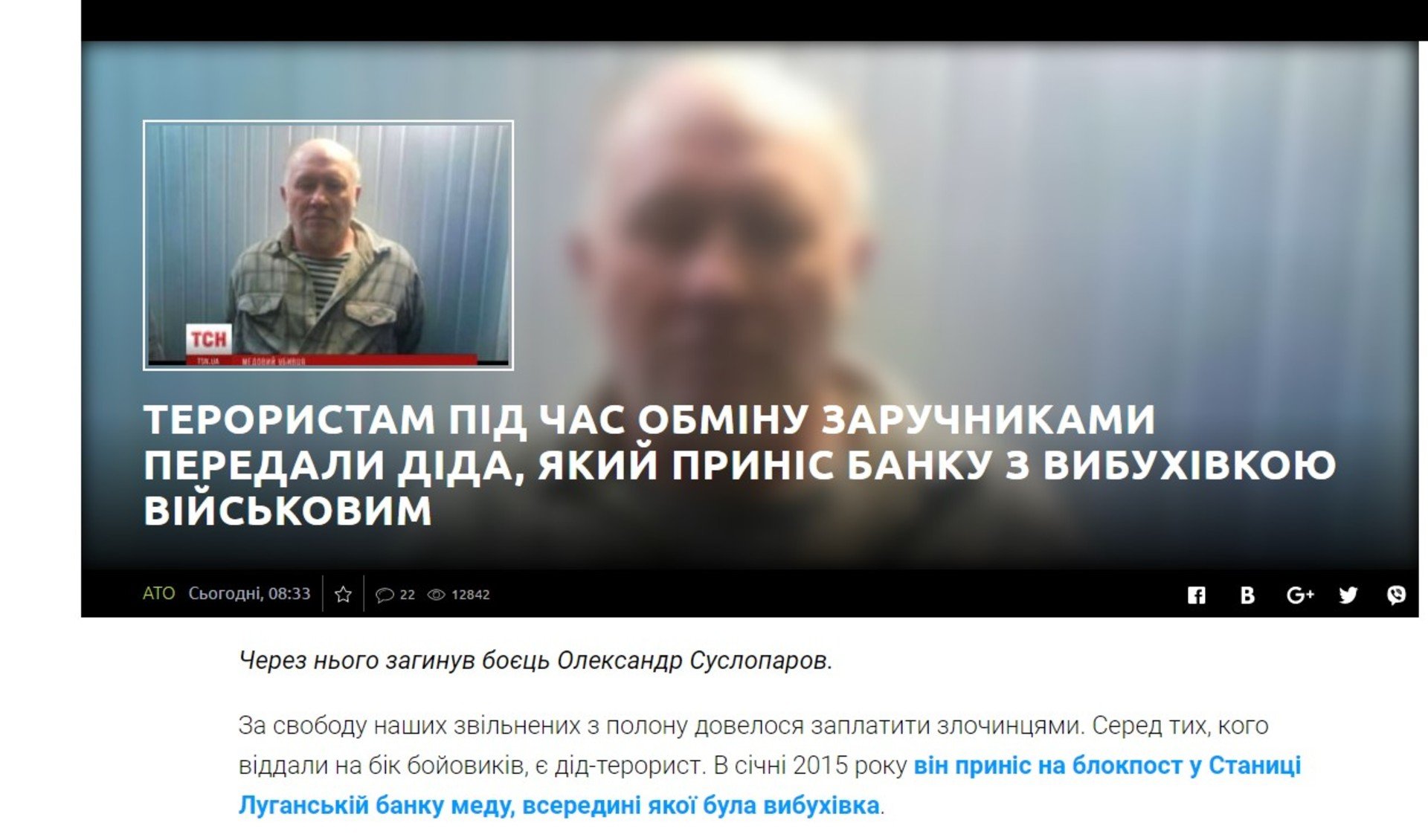 Зазначимо, 28 грудня служба новин ТСН повідомила, що ув'язненого за теракт передали під час обміну бойовикам.