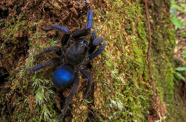 Синий тарантул, которого до сих пор так и не назвали, был найден во время экспедиции в Гайану. Исследователь Эндрю Снайдер (Andrew Snyder) говорит, что он был в ночном походе, когда луч от его фонарика выхватил из темноты что-то блестящее и синее. Сначала он подумал, что это просто отблеск от глаз паука (отражение света от мембраны глаз животных), но при ближайшем рассмотрении биолог понял, что перед ними ярко-синие мохнатые лапы.