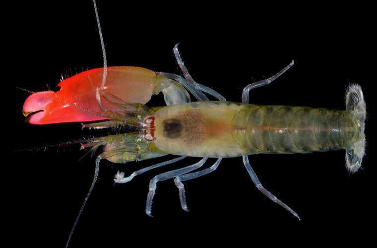 Новый вид креветок, названный в честь британской рок-группы Pink Floyd, пополнил список открытий 2017 года. Креветки Synalpheus pinkfloydi используют свою большую розовую клешню, чтобы создать громкий звук, способный даже убивать крошечных рыб.