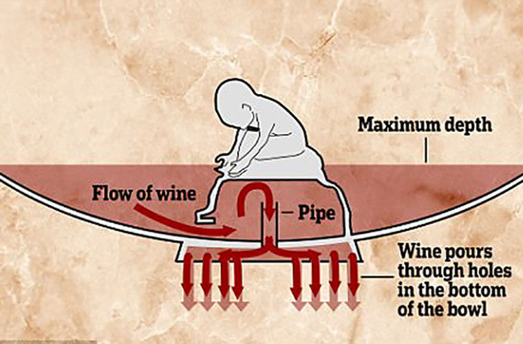 «Это самый ранний пример розыгрыша, разумеется, для римлян. Представьте, как сосуд подают ничего не подозревающему гостю, раб наполняет чашу, и вдруг она начинает внезапно протекать», — объясняет доктор Ричард Хоббс, куратор в Британском музее.