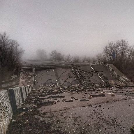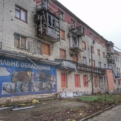 Путиловский мост уже три года как разрушен. В январе 2015-го боевики взорвали его, опасаясь наступления ВСУ. Из-за близости к линии фронта и, как следствие, постоянных обстрелов, район обезлюдел. Стены зданий посечены осколками, разбиты балконы, в окнах вместо стекол – листы ДСП, со столбов свисают куски оборванных проводов.