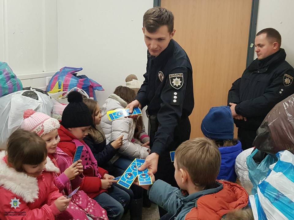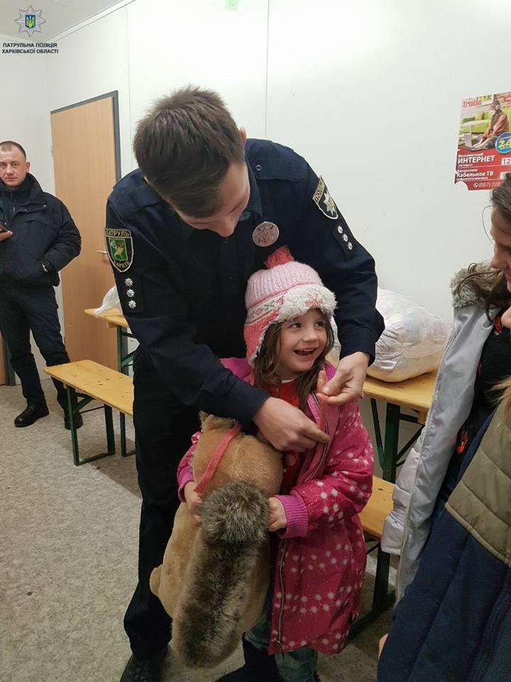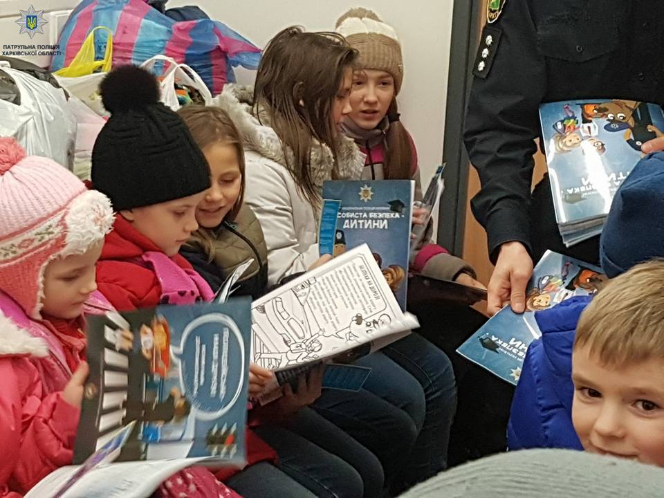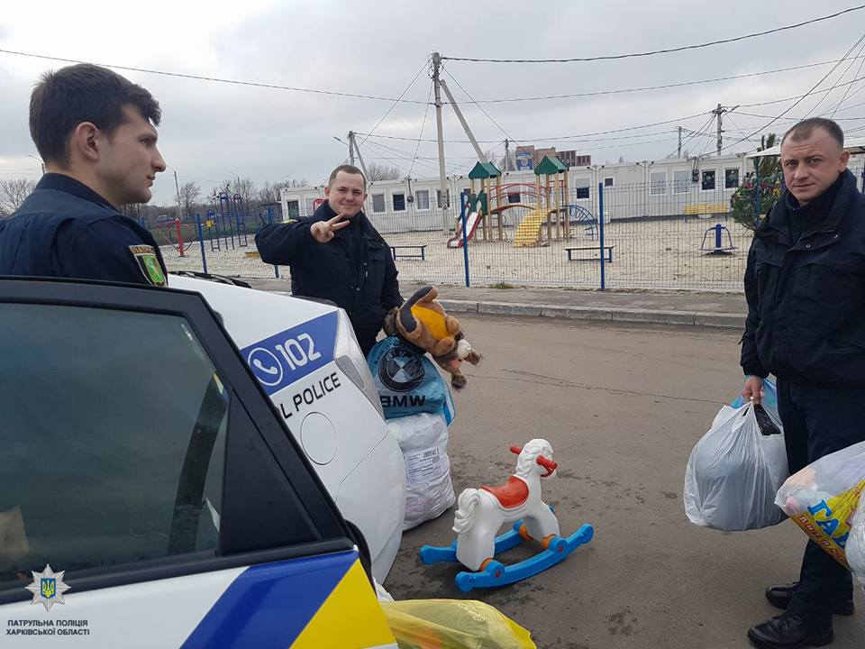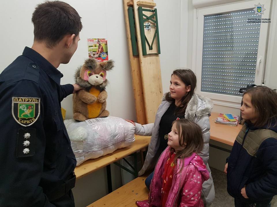 Харьковские патрульные накануне посетили детей, проживающих в модульном городке для переселенцев
