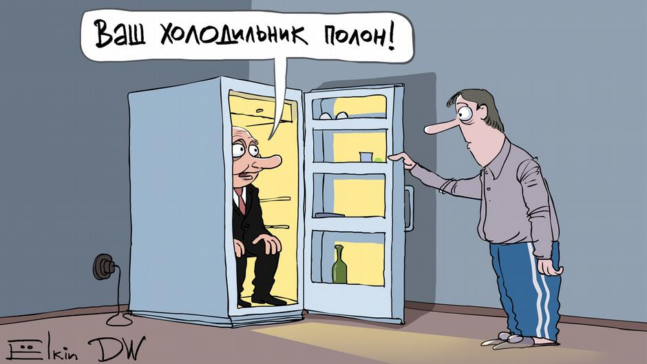 Президент Владимир Путин уверяет, что экономика России преодолела спад. Однако россияне этого пока не почувствовали, констатирует карикатурист Сергей Елкин.