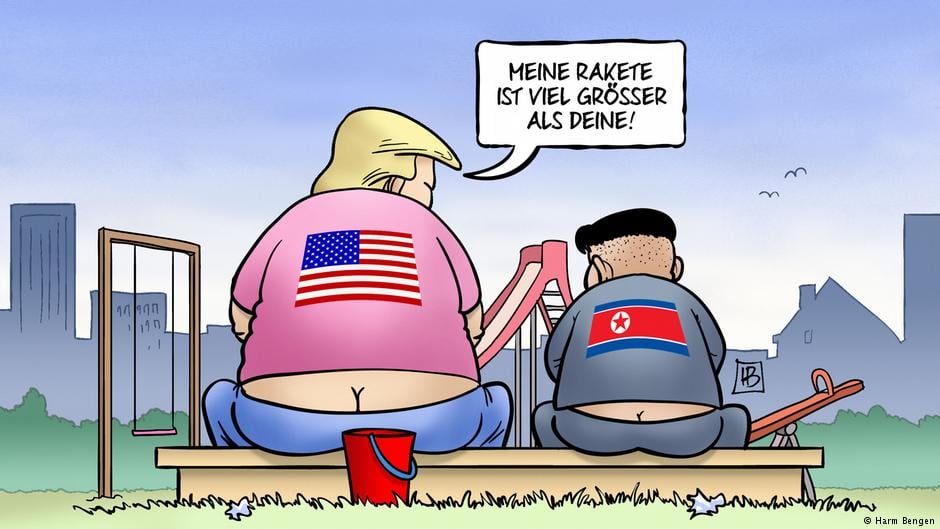 Это вершина банализации конфликта вокруг атомной программы КНДР: сначала северокорейский диктатор Ким Чен Ын дает Соединенным Штатам знать, что ядерная кнопка всегда на его рабочем столе. А затем президент США Дональд Трамп в ответ заявляет, что его кнопка, приводящая в действие ядерное оружие, намного больше и мощнее. Если Трамп имел в виду, что американский ядерный арсенал и его разрушающая способность намного сильнее северокорейского, то тогда в этом нет ничего нового. В таком случае это даже в качестве угрозы звучало бы излишне.