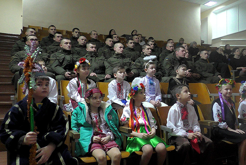 Напередодні Різдва бійці військової частини 3035 завітали на святкову виставу до учнів Слов’янської школи № 15, а вже у святвечір артисти театру «Животоки» заколядували нацгвардійцям.