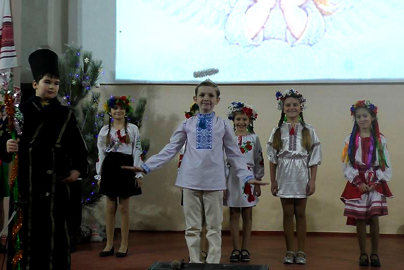 Вертеп для вояків підготували учні третього класу. Діти через символи різдвяної казки та традиційних персонажів усної народної творчості нашого народу намагалися продемонструвати перемогу Добра над Злом та підтримати бойовий дух українських військовослужбовців.
