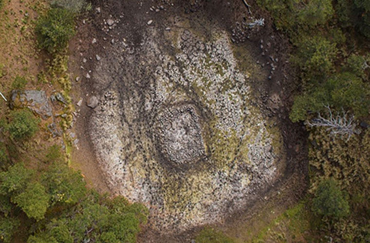 Структура, обнаруженная на высоте 4000 м над уровнем моря, сложена из камней разного размера. Святилище устроено так, чтобы у наблюдателя, стоящего на берегу озера, возникло ощущение, что глыбы плавают на поверхности, а не лежат на дне.