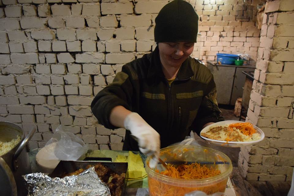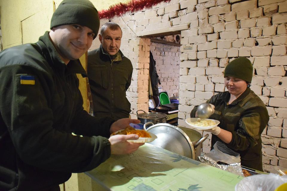 З вигляду звичайна жінка, по життю усміхнена, щира, навіть не скажеш, що вона військова, поруч лежить бронежилет і автомат, штик - ніж, і каска. Так вже склалося, що під кінець 2015 року Оксана кардинально вирішила змінити добре оплачувану цивільну роботу на службу у війську. Згодилась там її набута професія готувати і годувати, адже до цього Оксана працювала в ресторанах у Києві, в Буковелі. Поштовхом залишити цивільну роботу її ще більше надихнули події на Майдані, які згодом переросли у справжню війну. Але тривалий час, щоб допомагати українському війську не відпускали домашні клопоти, старенька мама і троє діток, яких виховує сьогодні Оксана Ярмаш. На її тендітних плечах, далеко від дому, що на Тернопільщині лежить велика відповідальність – годувати людей. Безумовно такі професіонали як вона, знають як зробити, аби кожен оцінив її старання. Рано встає, пізно лягає, цілий день, як та бджілка працює, щоб ніхто не був бодай ображений на смак чи якість страви. Приготувати їжу на таку кількість солдат в зоні АТО одній зазвичай важко, тому на кухні завжди хтось допомагає. І картоплю почистять, і продукти доставлять, а на святкове меню Оксана обов’язково кличе дівчат, котрі різні за посадами, але все ж... дівчата. Смачне меню на Новорічний та Різдвяний стіл і цього разу готували в колективі. Завдячує вона у цьому своїм посестрам по службі, а особливо за солодкий торт - десерт Світлани Дарморіс, принаймі про це кажуть самі військові. Подейкують, якщо солдат добре нагодований, йому й воювати легше. Але й справді нагодовані захисники військовим поваром Оксаною Ярмаш сьогодні впевнено несуть службу на захисті своїх кордонів, бо переживати про відсутність якісної, приготовленої по-домашньому їжі підстав і помислів зовсім немає.