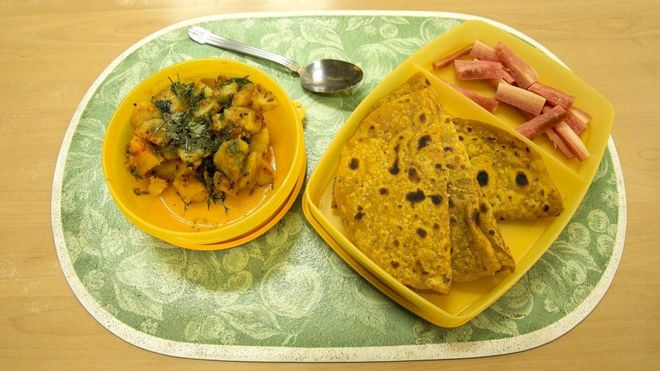 Контейнеры с горячей едой (тиффины) может доставить прямо в офис курьер из службы доставки обедов, так называемый даббавала. Причем еда может быть как из ресторана, так и приготовленная кем-то в домашних условиях.