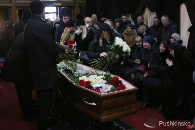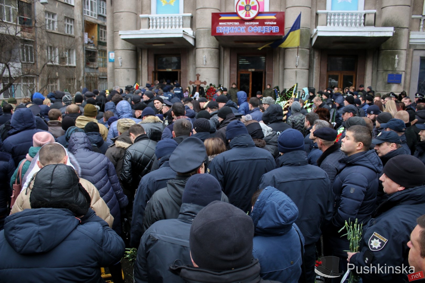 Проститься с погибшим пришли около 800 человек, среди которых правоохранители, медики, друзья и близкие полицейского, а также неравнодушные одесситы. Церемонию прощания проводят в Доме офицеров на улице Пироговской. Желающие заходят в здание и оставляют цветы возле гроба погибшего, отмечает Пушкинская.