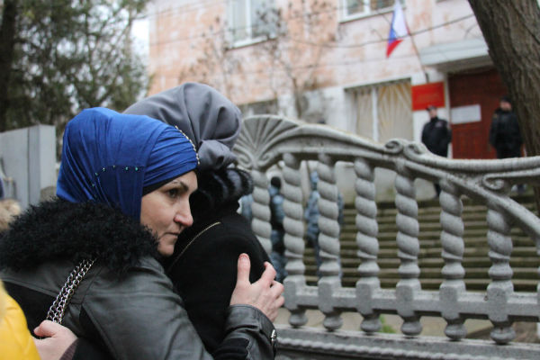 Перед началом заседания коридор битком набит слушателями, в основном женщинами. С момента аннексии поддержка во время судов и обысков стала привычным делом. "Все заседания по делам "Хизб ут-тахрир" проходят в закрытом режиме - абсолютно безосновательно. Жены не допускаются не только в зал суда, но порой и в само здание. Для них заседания - единственная возможность увидеть супруга. Для всех это очень болезненный вопрос, поэтому сегодня здесь столько людей", - объясняет активистка "Крымской солидарности" Лютфие Зудиева.