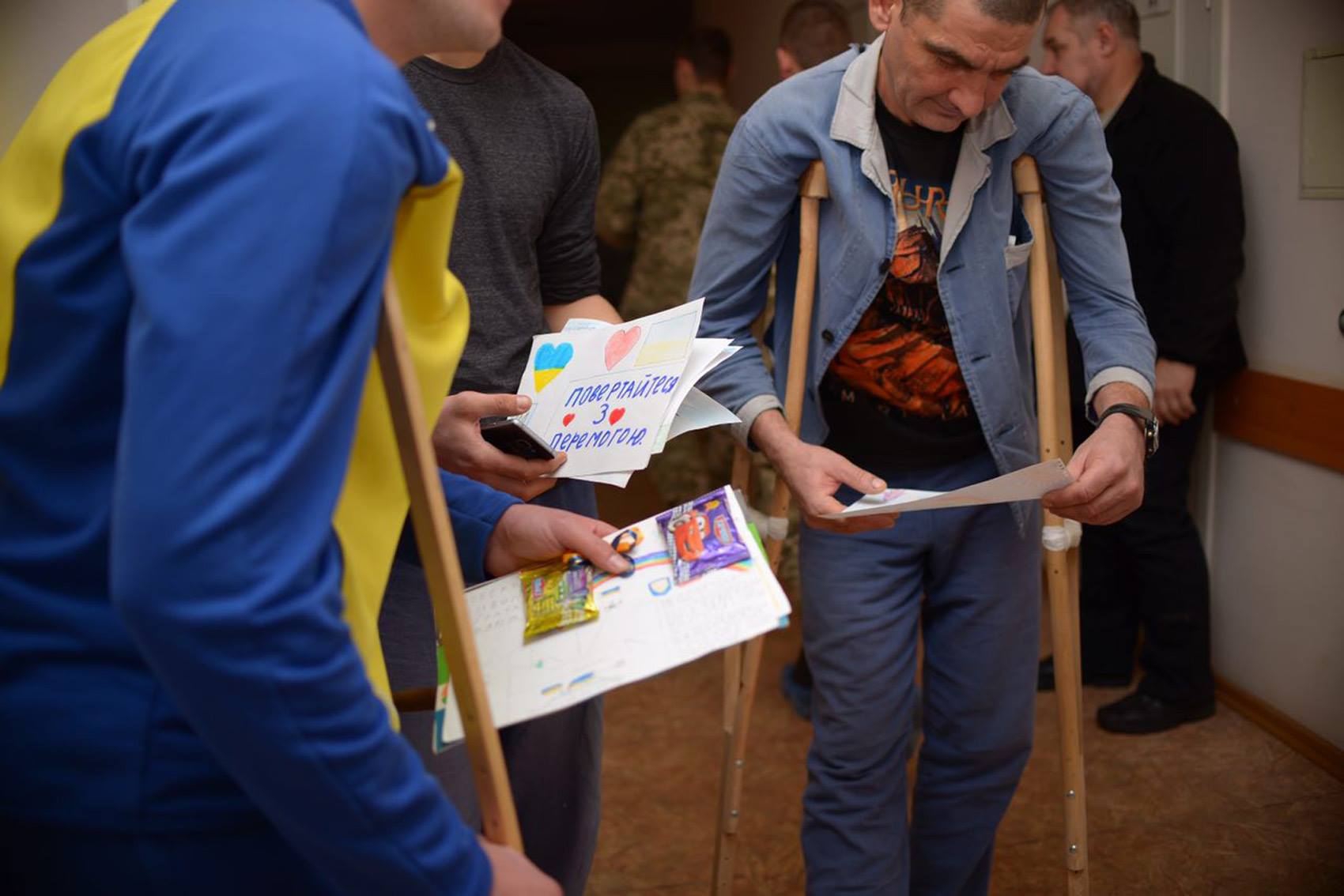 Кадети Державної гімназії-інтернату з посилено військово-фізичною підготовкою «Кадетський корпус» разом із вихованцями Харківського обласного палацу дитячої та юнацької творчості відвідали поранених воїнів.
