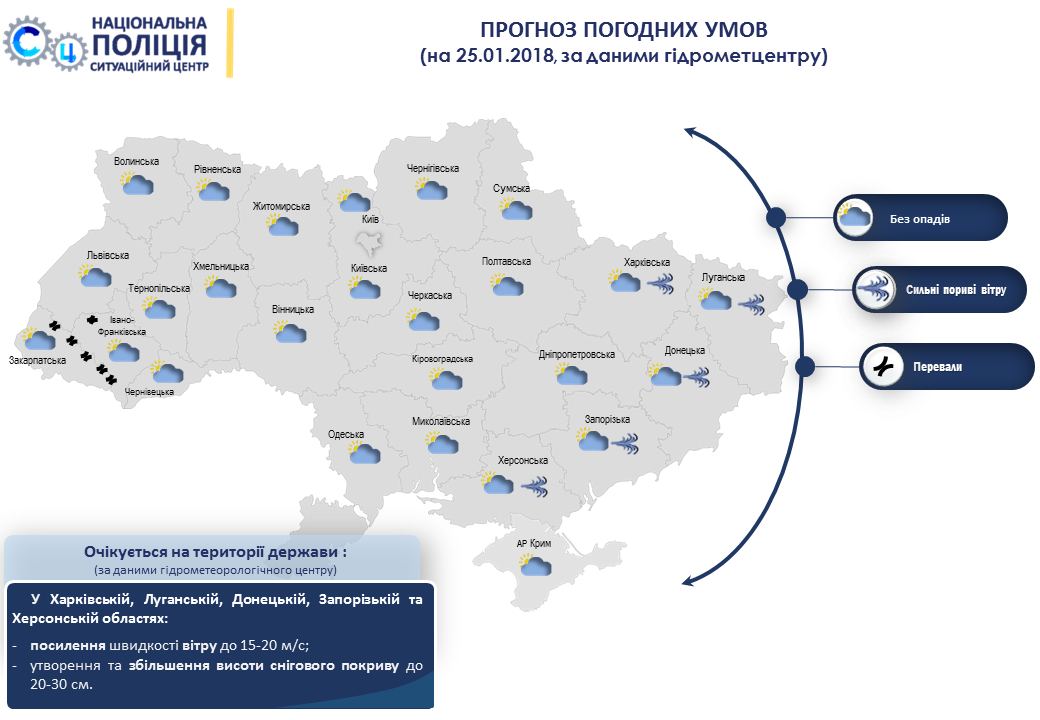 Национальная полиция рассказала о прогнозе синоптиков на 25 января 2018 года: