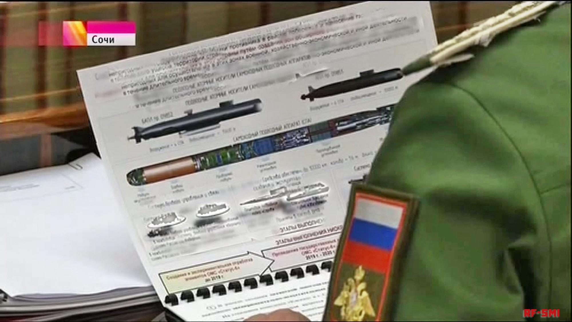 Впервые информация о проекте "Статус-6" стала известна в ноябре 2015 года. Тогда в репортажах двух российских каналов о совещании по оборонным вопросам, которое проводил Путин, мелькнули кадры с презентацией новой военной техники. Когда репортаж разобрали покадрово, то стало известно, что военный чин держит в руках описание и технические характеристики океанской многоцелевой системы "Статус-6", который разрабатывает конструкторское бюро морской техники "Рубин". Стоп-кадр с презентацией в руках военного был растиражирован в интернете и подвергся изучению специалистов, пишет на Обозревателе эксперт в сфере развития ВПК Украины Максим Глущенко.