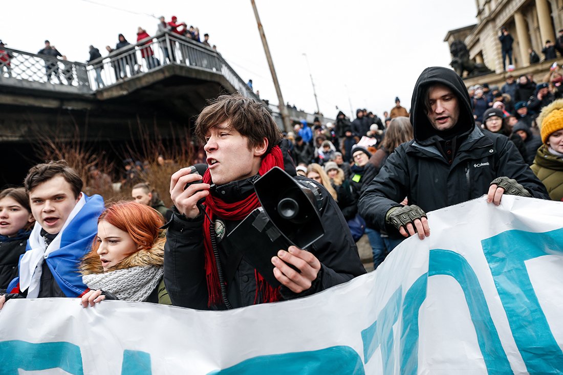 Большинство митингующих объясняли, что вышли на улицу не только из-за отказа Навальному в регистрации кандидатом в президенты. Люди говорили, что их раздражает коррупция и бессменность Путина. Люди в первую очередь были недовольны отсутствием альтернативы на президентских выборах.