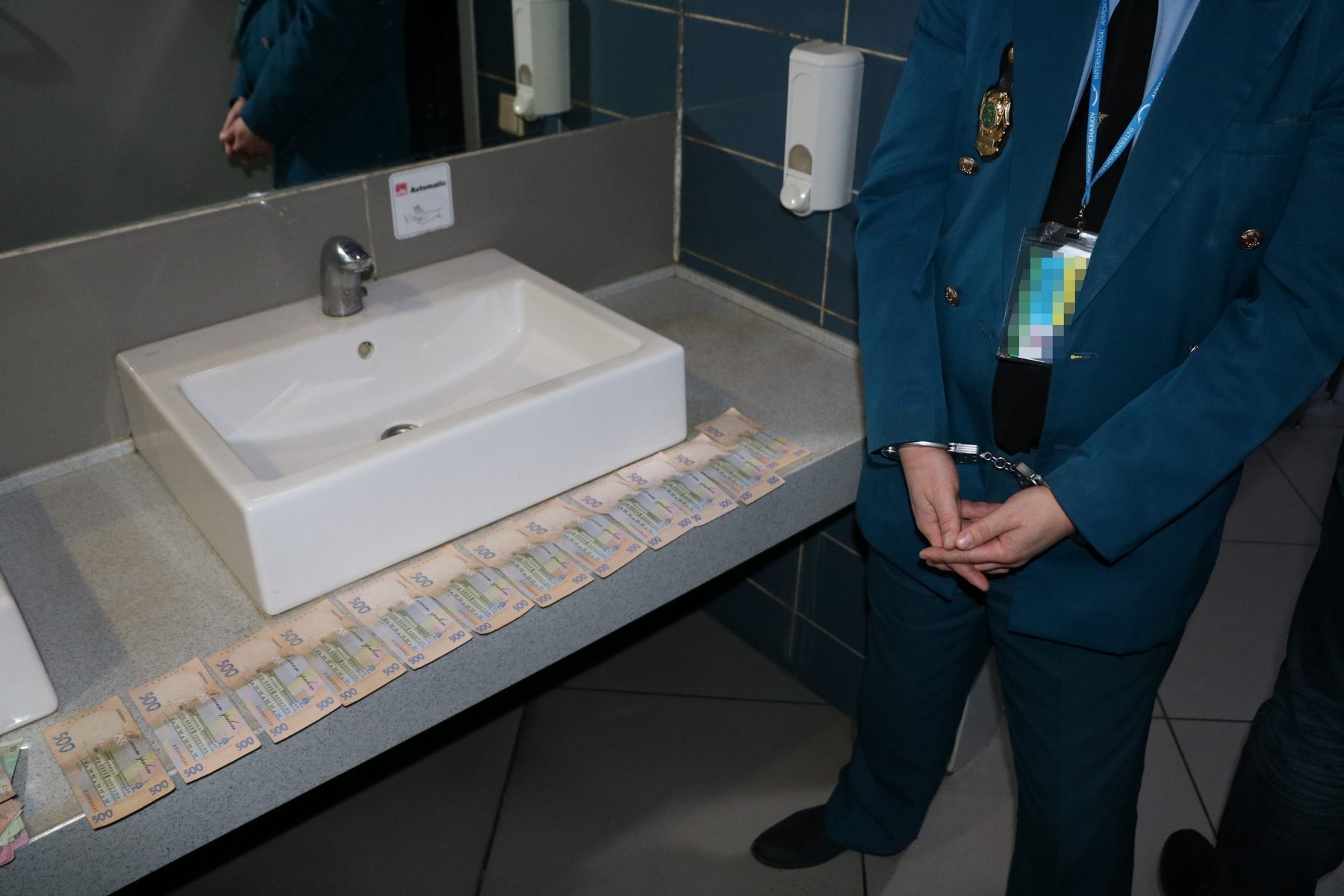 Співробітники СБ України затримали одного з фігурантів справи у приміщенні Міжнародного аеропорту «Харків» під час одержання чергового хабара у розмірі шести тисяч гривень.