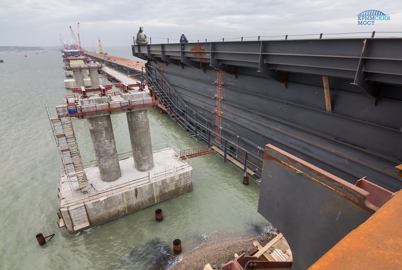 Всего на Керченский мост будет установлено 30 железнодорожных пролётов, которые будут размещены на 64 опорах. Каждый пролет, в свою очередь, весит 580 тонн. Иными словами, к окончанию работ на опоры Керченского моста будет оказана дополнительная нагрузка составляющая 17 400 тонн — практически треть от всей конструкции (около 60 тыс тонн).