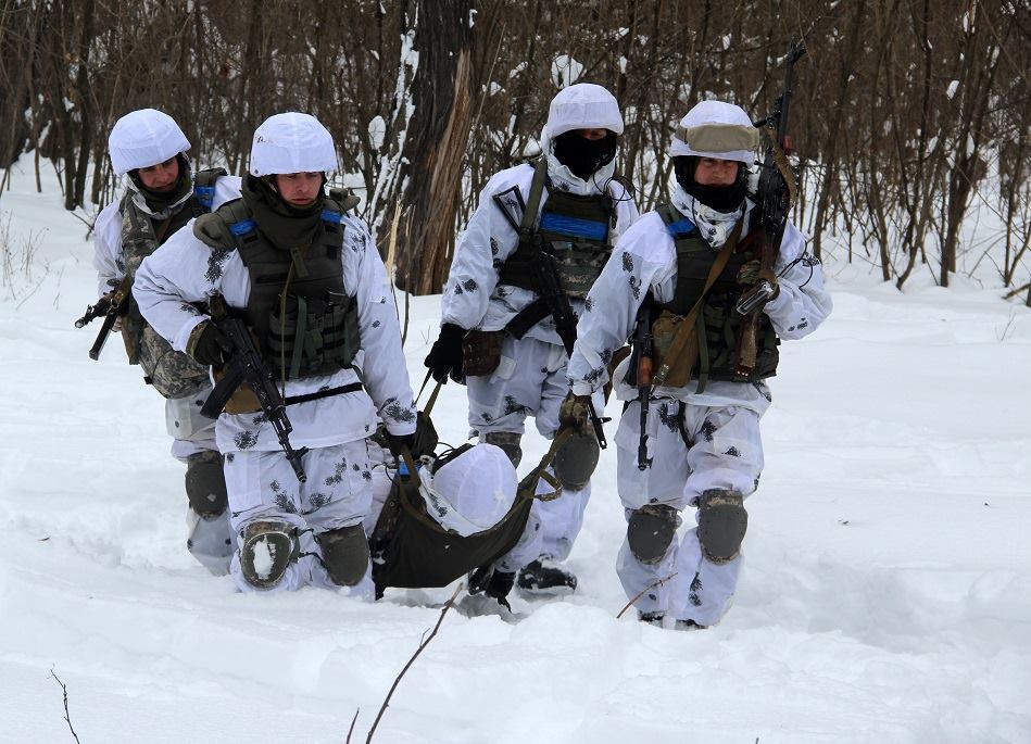 В районе проведения антитеррористической операции военнослужащие одного из подразделений отдельной десантно-штурмовой бригады совершенствуют профессиональные навыки в рамках тактико-специальной подготовки, учатся различным видам боя, оттачивают действия в экстремальных ситуациях.