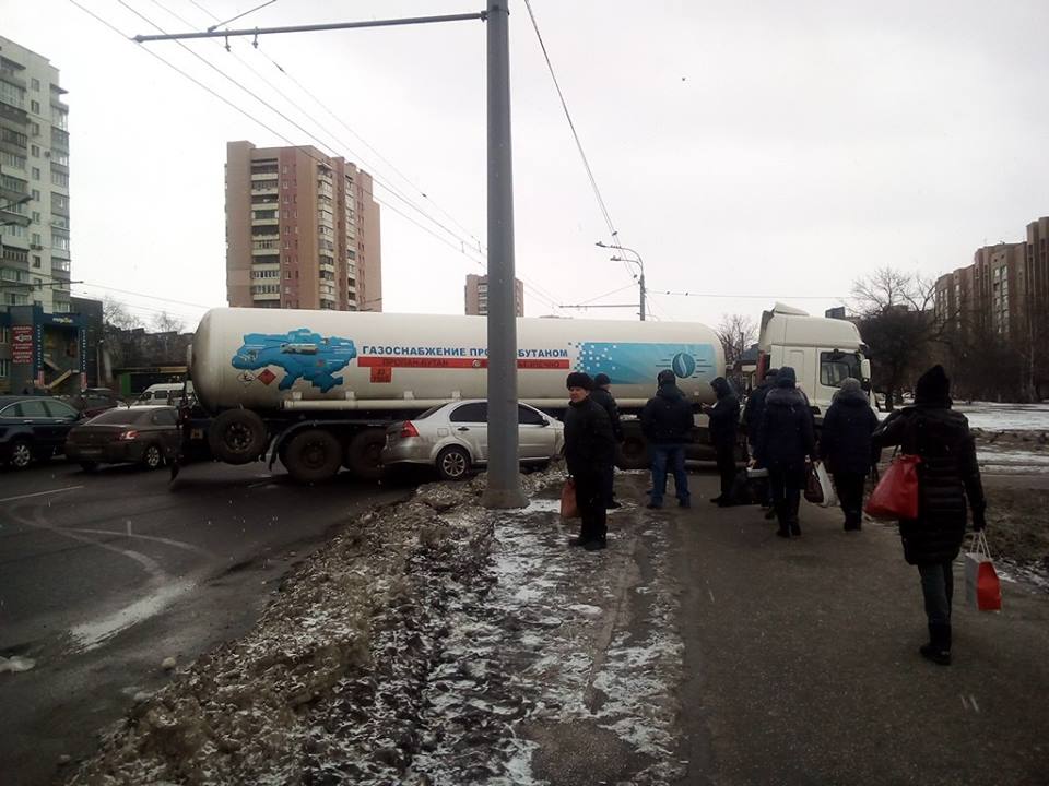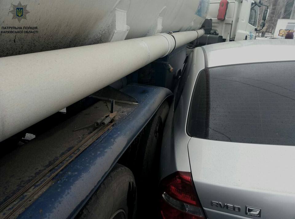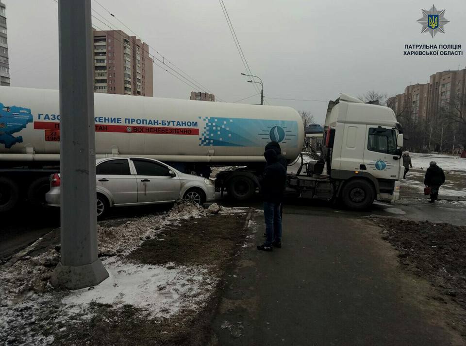 По информации патрульной полиции города, "водитель, управляя газовозом DAF, выполнял поворот направо со второй полосы движения так как из-за своих габаритов не мог выполнить поворот с соответствующего крайнего положения, чем создал препятствие автомобилю Chevrolet Aveo, который двигался в попутном направлении в результате чего произошло столкновение".