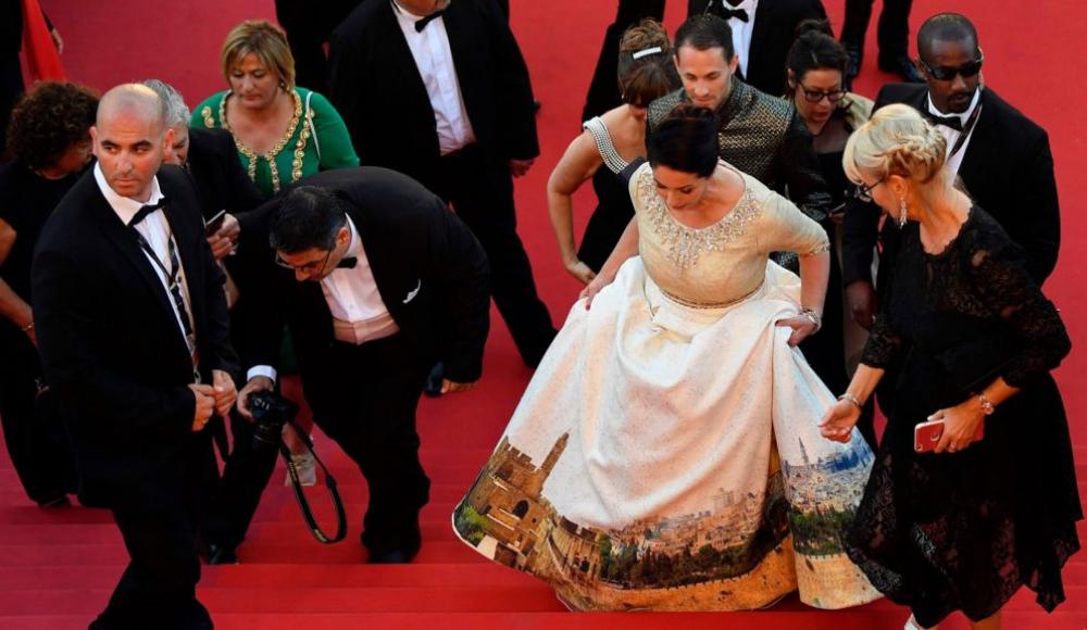 Платье с золотой вышивкой сверху и видом на Стену плача и Старый город на подоле белой юбки было призвано «продемонстрировать красоту Иерусалима в честь 50-летия его освобождения».
