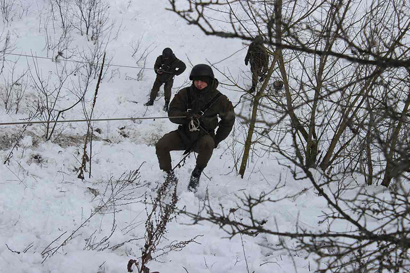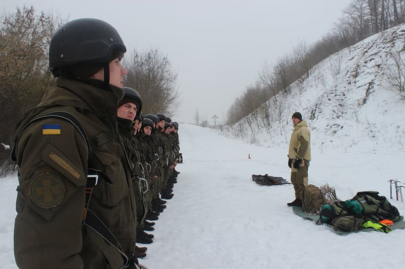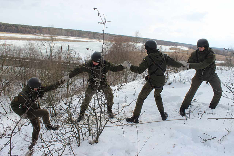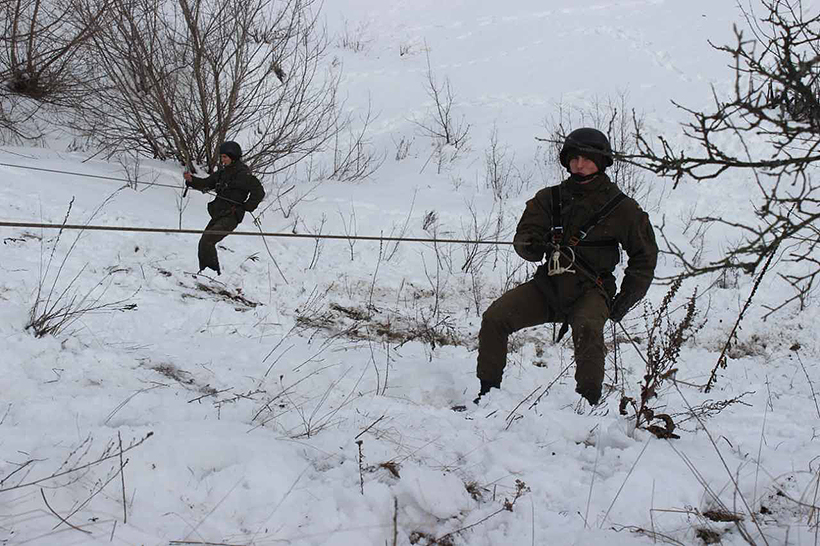 Досвідчені викладачі кафедри управління повсякденної діяльності підрозділів полковник Володимир Халеп та капітан Максим Саморок провели практичне заняття з особовим складом групи спеціального призначення з гірської підготовки. Курсанти отримали навики, як правильно та вміло пересуватися на засніженій гірській місцевості, порядок підйому та спуску з холмистої місцевості як зі спеціальним альпіністським спорядженням так і без нього.