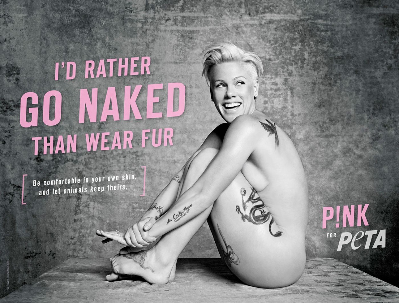 анее для рекламы против меха обнажались Памела Андерсон, Наоми Кэмпбелл, Ева Мендес, Пинк и другие знаменитости.